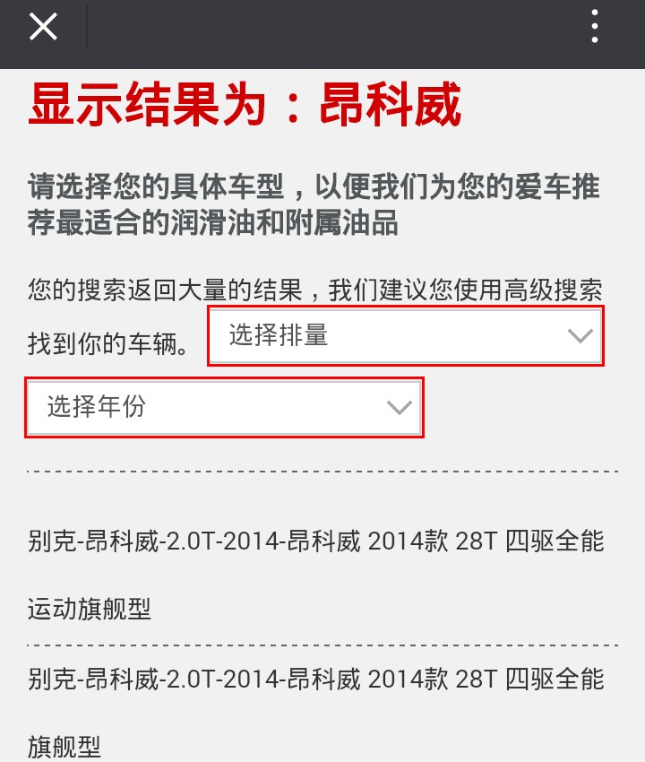 選擇車輛的排量、年份后,“潤滑管家”將自動篩選車型,車主根據(jù)車輛配置點擊相關(guān)選項即可