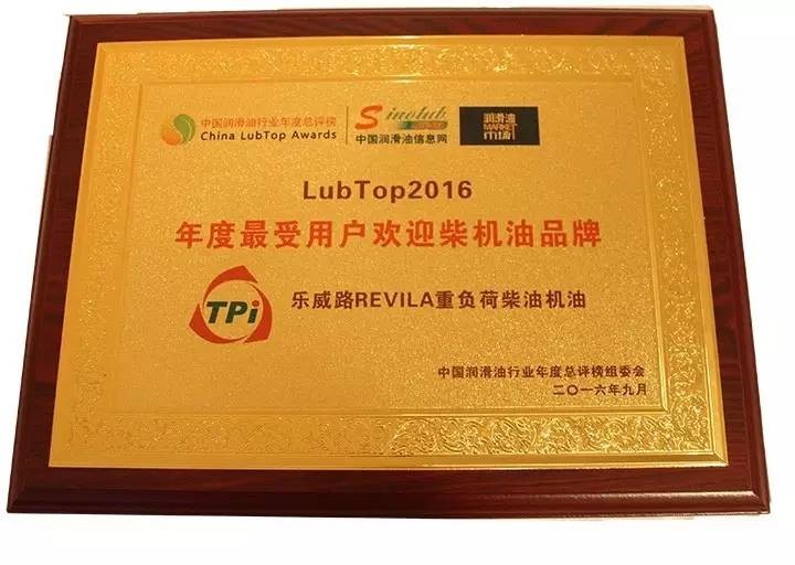 熱烈祝賀REVILA樂威路重負(fù)荷柴油機(jī)油喜獲Lubtop2016年度最受用戶歡迎柴機(jī)油品牌獎(jiǎng)項(xiàng)!
