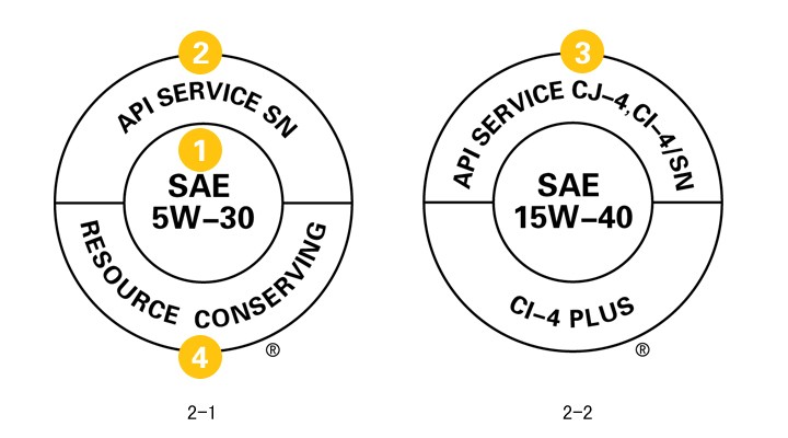 圖2-2圓環(huán)圖上半部分中,既有柴油發(fā)動(dòng)機(jī)油類別又有汽油發(fā)動(dòng)機(jī)油類別,其代表的意義為這款產(chǎn)品既能用于柴油發(fā)動(dòng)機(jī)也可能適用于汽油發(fā)動(dòng)機(jī)保養(yǎng)。對(duì)于這款標(biāo)志來(lái)說(shuō),這一認(rèn)證首先屬于“C”類別,緊接著是“S”類別。但需要注意的是,“C”類機(jī)油經(jīng)特殊合成主要適用于柴油發(fā)動(dòng)機(jī),可能不滿足汽車制造商建議的有關(guān)汽油發(fā)動(dòng)機(jī)的所有性能要求。