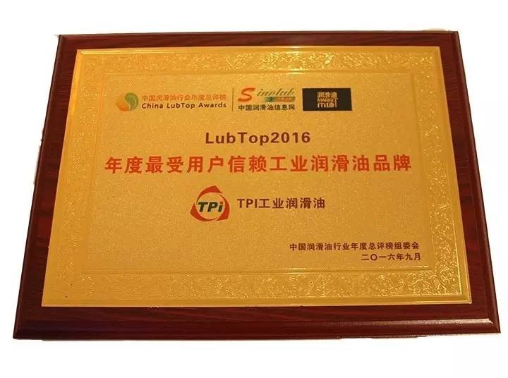 熱烈祝賀TPI工業(yè)潤(rùn)滑油喜獲Lubtop2016年度最受用戶(hù)信賴(lài)工業(yè)潤(rùn)滑油品牌獎(jiǎng)項(xiàng)!