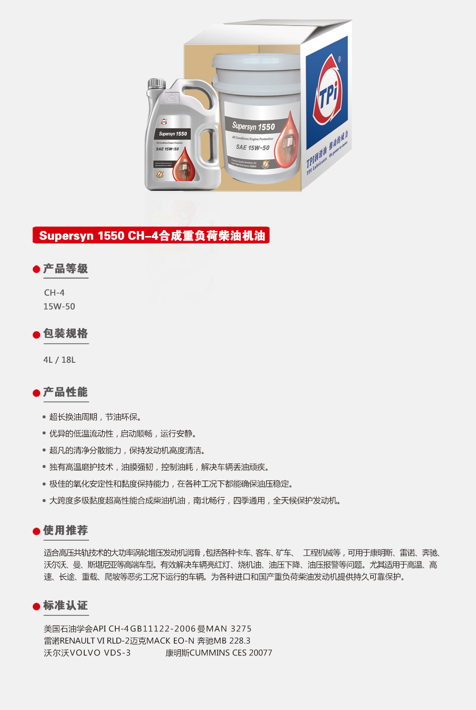 Supersyn1550CH-4合成重負(fù)荷柴油機(jī)油