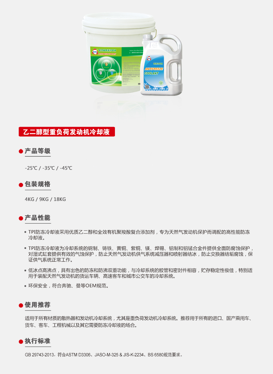 乙二醇型重負荷發(fā)動機冷卻液